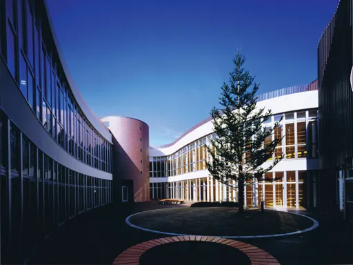 建物2階のチャペルは、外壁が勾玉の一辺の曲線にて囲われ、天井に於いては天女が脱ぎ捨てた羽衣が、ひらひらと舞い落ちるような優美な曲線にて形成されています。今までに多くの現場を経験しましたが、このような曲線に囲まれた空間は初めてでした。 一方体育館は、約20mの長大スパンに鉄骨H鋼梁を架けると言う、京都の町中では経験の出来ないような大仕掛けな施工を行いました。 思い出せば、色々な事が頭に浮かんできますが、機会が有れば是非一度見学をして下さい。 良い勉強になると思います。