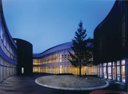 外観は、遠目に見ると、なんの変哲もない79m× 59mの矩形な建物で、施工屋にとっては非常にやりやすいLuckyな建物としか見えませんが近づいてよくよく見ますと、1階2階共に足元・腰壁はRC 打ち放し、壁はALCがデコボコデコボコの連続でそれに磁器タイルと化粧金物が取り付いて、S造下地の深い庇が出ています。